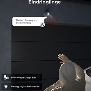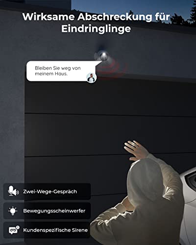 - Sofortige & anpassbare Reaktionen auf Ereignisse: Spotlight, Sirene, Push-Nachricht und Alarm-E-Mail werden ausgelöst, wenn eine Bewegung erkannt wird. Sie können die Sirene mit Ihrer eigenen Stimme anpassen, um Unwillkommene besser abzuschrecken.