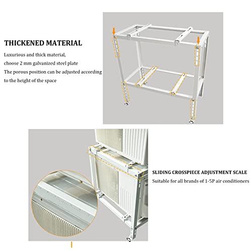 - Anpassbare Passform mit verstellbarem Design: Bietet Vielseitigkeit mit einer verschiebbaren Querstange für verschiedene Kondensatorgrößen, um eine perfekte Passform für die meisten Mini-Split-AC-Einheiten zu gewährleisten. Überprüfen Sie immer die Maße Ihrer Ausrüstung auf Kompatibilität.