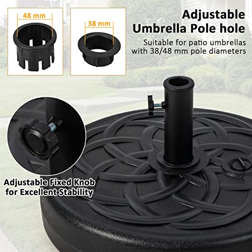 - Dieser runde Schirmständer ist für verschiedene Schirmgrößen konzipiert, mit einer stabilen Metallstange und zwei Kunststoff-Rts, wodurch er für 300 cm große Terrassenschirme mit 38 mm / 48 mm Stangen geeignet ist