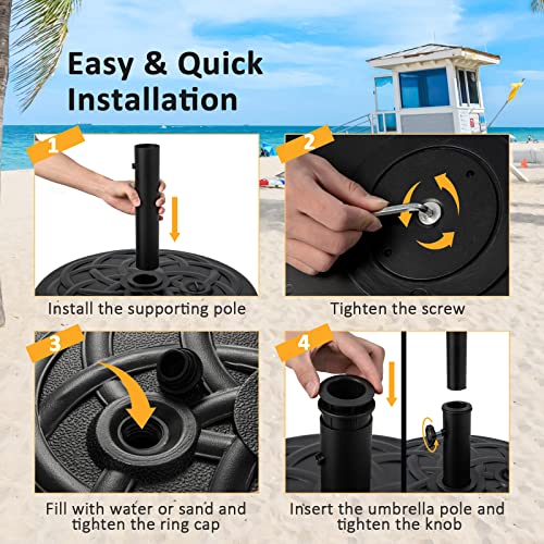 - 【Einfache Installation】 Der beschwerte Schirmständer ist für eine problemlose Einrichtung konzipiert. Einfach die Stützstange drehen, Schraube festziehen, mit Wasser oder Sand füllen und die Kappe sichern. Sobald Sie fertig sind, attac