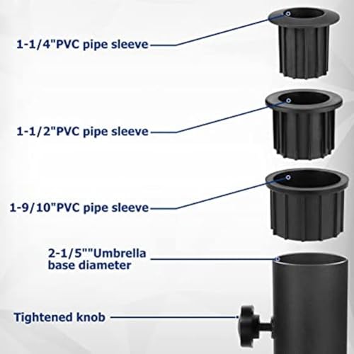 - [Verstellbare Passform für verschiedene Stangen] Unser Produkt enthält drei PVC-Hülsen, die für Schirmstangen mit unterschiedlichen Durchmessern (2,9 cm, 3,8 cm und 4,8 cm) entwickelt wurden. Dies sorgt für einen sicheren Sitz, der Wackeln minimiert und die Stabilität bei luftigen Bedingungen verbessert. Ideal für den Außenbereich, diese vielseitige Lösung hält Ihren Terrassenschirm sicher an Ort und Stelle, sodass Sie Ihren Platz bequem genießen können.