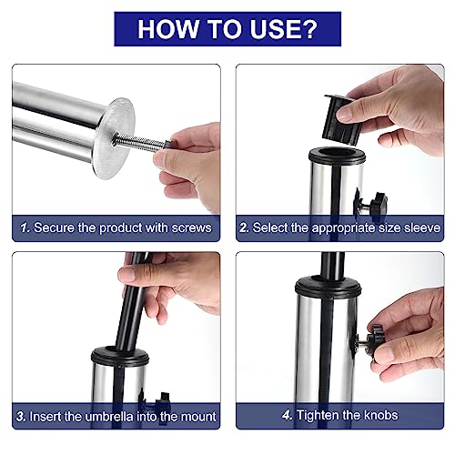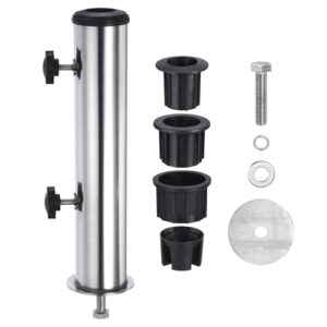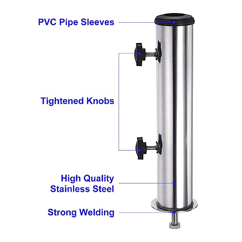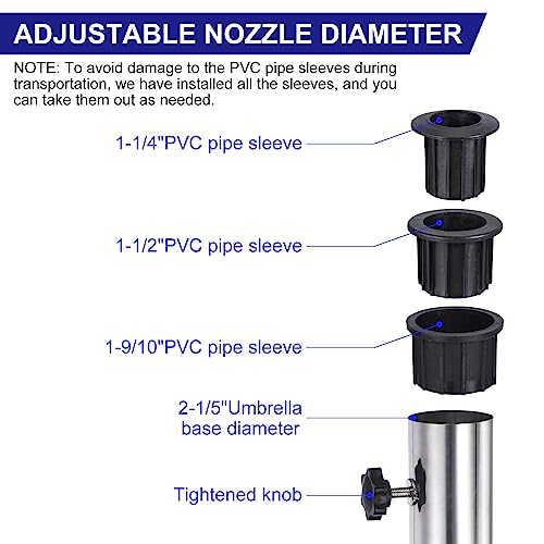 - Einfache Installation – Unser Schirmständer verfügt über ein 10 mm Schraubenloch an der Basis für mühelosen Aufbau. Stecken Sie einfach die Schraube durch das Loch in der flachen Platte und befestigen Sie sie am Edelstahlrohr. Mit zwei zusätzlichen Befestigungsknöpfen am Rohr können Sie mehr Stabilität und Vertrauen gewährleisten und Ihren Outdoor-Regenschirm während des Gebrauchs fest an Ort und Stelle halten.