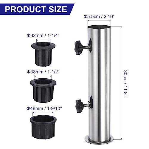 - Komplette Lieferumfang: Unser Schirmständer-Set enthält alle wichtigen Dinge für Ihre Terrasse. Es verfügt über ein robustes Schirmständerrohr (30 x 5,5 cm), drei PVC-Rohrhülsen (3,8 cm, 3,8 cm, 4,8 cm), einen Stahlnagel, drei Metallringe und zwei festgezogene Knöpfe. Dieser vielseitige und stabile Schirmständer sorgt für Stabilität für Ihr Outdoor-Erlebnis. Ideal für jeden Außenbereich