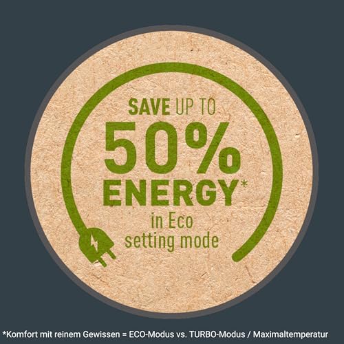 - 2 anpassbare Heizstufen: Wählen Sie zwischen der Eco-Einstellung für eine dezente Wärme oder die Turbo-Einstellung für ein kraftvolleres schnelles Aufheizen