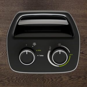 - 2 anpassbare Leistungsstufen: Wählen Sie zwischen der Eco-Einstellung für eine dezente Wärme oder die Turbo-Einstellung für ein kraftvolleres schnelles Aufheizen