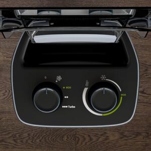 - 2 anpassbare Leistungsstufen: Wählen Sie zwischen der Eco-Einstellung für eine dezente Wärme oder die Turbo-Einstellung für ein kraftvolleres schnelles Aufheizen