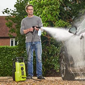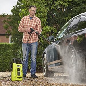 RYOBI 1400 W Elektro-Hochdruckreiniger RY110PWA, 110 bar Druck, 390 l/h Födermenge, 40° Wassertemperatur, Aluminiumpumpe, 5m Schlauch, 5m Kabel, Reinigungsmittelflasche, Vario und Turbo-Lanze