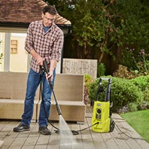 RYOBI 1600 W Elektro-Hochdruckreiniger RY130PWA (130 bar Druck, 420 l/h Födermenge, 40 Wassertemperatur, Aluminiumpumpe, 5m stahlarmierter Schlauch, 5m Kabel, Vario- und Turbo-Lanze, Universalbürste)