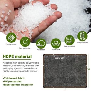 - ✔【Hochwertige HDPE-Materialien】Das schattierungsnetz besteht aus Polyethylen hoher Dichte (HDPE), brandneuen Rohstoffen, UV-Stabilisatoren und Oxidationsbehandlung mit starker Zugfestigkeit, Alterungsbeständigkeit und Korrosionsbeständigkeit.