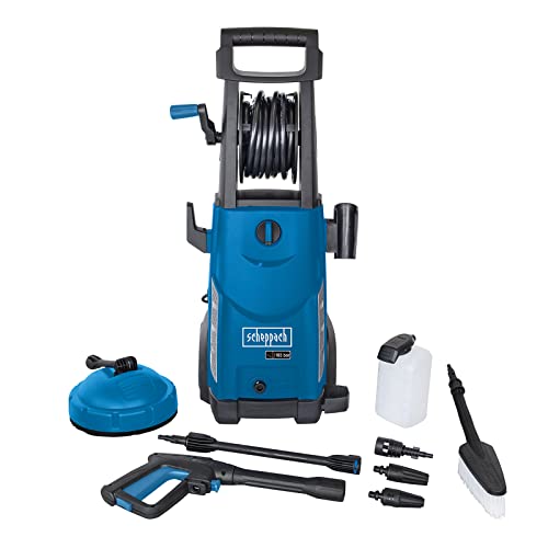 Scheppach Hochdruckreiniger HCE2200 mit 8-TLG. Zubehör | 10m Schlauchrolle | 165bar | 230V 2200W | max. Fördermenge: 468 l/h | langlebige Aluminium Pumpe | Ansaugfunktion & Reinigungsmitteltank