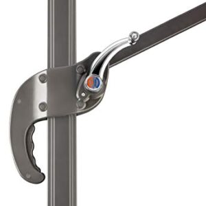 - Per Drehteller mit Fußpedal um 360° drehbar, entlang des Mastes neigbar
