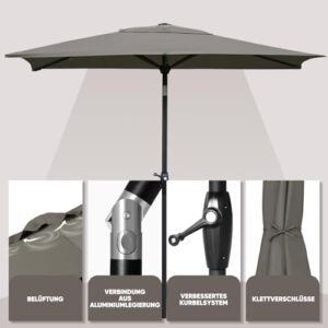 - Einfaches Kurbelsystem - Das robuste Gerüst und die innovative Kurbeltechnologie ermöglichen eine mühelose Montage für den täglichen Gebrauch. Drücken, heben und kurbeln Sie den Schirm einfach in die gewünschte Position;