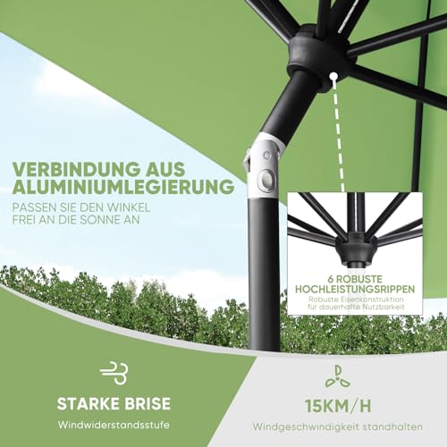 - Ü𝐛𝐞𝐫𝐥𝐞𝐠𝐞𝐧𝐞𝐬 𝐌𝐚𝐭𝐞𝐫𝐢𝐚𝐥 & 𝐒𝐭𝐚𝐛𝐢𝐥𝐢𝐭ä𝐭 – Hochwertiges 𝐀𝐥𝐮𝐦𝐢𝐧𝐢𝐮𝐦𝐠𝐞𝐬𝐭𝐞𝐥𝐥 mit extra starken 𝟏𝟐 𝐱 𝟏𝟖 𝐦𝐦 Streben und 𝟑𝟖 𝐦𝐦 Stangendurchmesser – für maximale Robustheit und Langlebigkeit.Schirmabdeckung aus 100% Polyester; ca. 𝟏𝟖𝟎 𝐠 / 𝐦²;