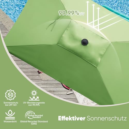 - 𝐄𝐢𝐧𝐟𝐚𝐜𝐡𝐞𝐬 𝐊𝐮𝐫𝐛𝐞𝐥𝐬𝐲𝐬𝐭𝐞𝐦 - Das robuste Gerüst und die innovative Kurbeltechnologie ermöglichen eine mühelose Montage für den täglichen Gebrauch. Drücken, heben und kurbeln Sie den Schirm einfach in die gewünschte Position;
