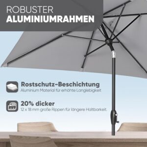 - Ü𝐛𝐞𝐫𝐥𝐞𝐠𝐞𝐧𝐞𝐬 𝐌𝐚𝐭𝐞𝐫𝐢𝐚𝐥 & 𝐒𝐭𝐚𝐛𝐢𝐥𝐢𝐭ä𝐭 – Hochwertiges 𝐀𝐥𝐮𝐦𝐢𝐧𝐢𝐮𝐦𝐠𝐞𝐬𝐭𝐞𝐥𝐥 mit extra starken 𝟏𝟐 𝐱 𝟏𝟖 𝐦𝐦 Streben und 𝟑𝟖 𝐦𝐦 Stangendurchmesser – für maximale Robustheit und Langlebigkeit.Schirmabdeckung aus 100% Polyester; ca. 𝟏𝟖𝟎 𝐠 / 𝐦²;
