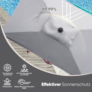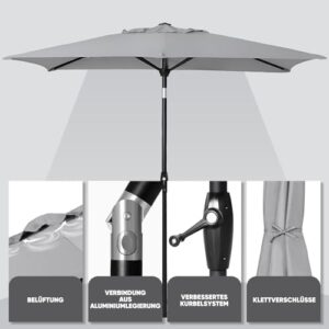 - 𝐄𝐢𝐧𝐟𝐚𝐜𝐡𝐞𝐬 𝐊𝐮𝐫𝐛𝐞𝐥𝐬𝐲𝐬𝐭𝐞𝐦 - Das robuste Gerüst und die innovative Kurbeltechnologie ermöglichen eine mühelose Montage für den täglichen Gebrauch. Drücken, heben und kurbeln Sie den Schirm einfach in die gewünschte Position;