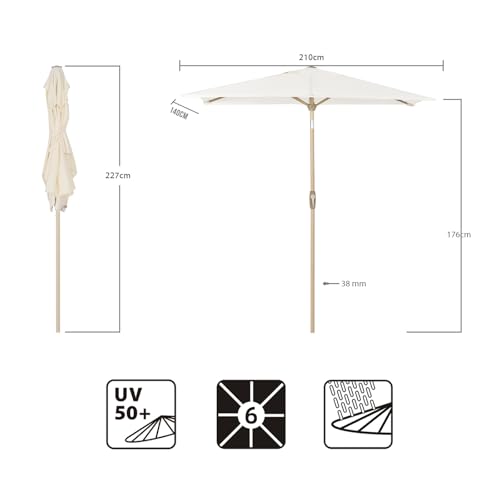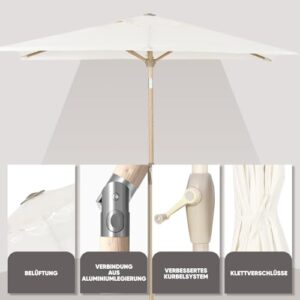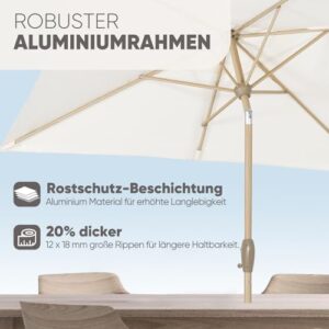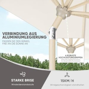 - Stange und Rippen mit Holzmaserung - Der Marktschirm wird von einer Aluminiumstange mit einem rostfreien Pulver in Holzmaserung getragen, rost- und korrosionsfrei. Die Holzstruktur verleiht dem Schirm ein klassisches Design. Leichter und langlebiger als Massivholz-Sonnenschirme. Einfach zu montieren;