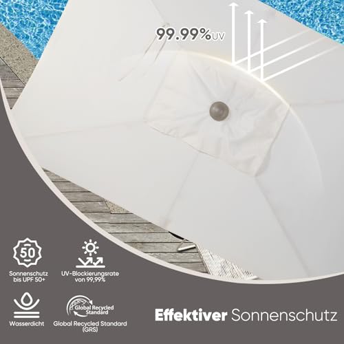 - Einfaches Kurbelsystem - Das robuste Gerüst und die innovative Kurbeltechnologie ermöglichen eine mühelose Montage für den täglichen Gebrauch. Drücken, heben und kurbeln Sie den Schirm einfach in die gewünschte Position;