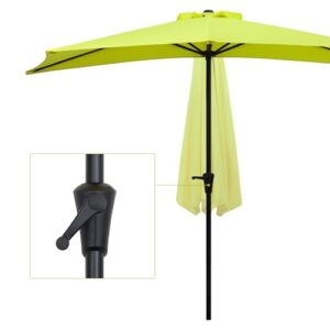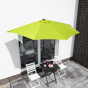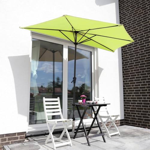 - Abmessung & Material::Halbrundes Design (Ø 270 cm) + 230 cm Schirmhöhe – ideal für wandnahe Montage an Balkonen, Terrassen oder Hauseingängen. 38 mm Stahlmast mit pulverbeschichteter Oberfläche – rostfrei & witterungsbeständig.