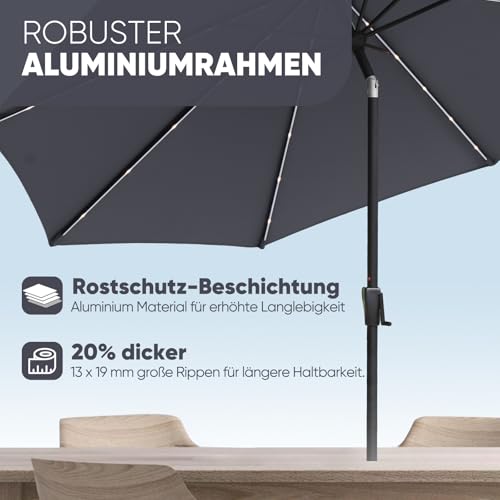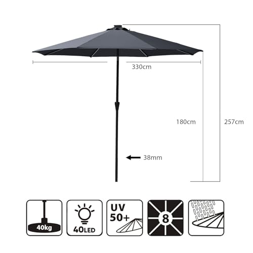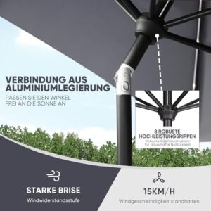 - 𝐀𝐛𝐦𝐞𝐬𝐬𝐮𝐧𝐠𝐞𝐧 & 𝐌𝐚𝐭𝐞𝐫𝐢𝐚𝐥-𝐆𝐫öß𝐞: 𝟑𝟑𝟎 𝐜𝐦, Schirmhöhe: 𝟐𝟓𝟕 𝐜𝐦, Stangendurchmesser: 𝟑𝟖 𝐦𝐦. Schirmabdeckung aus 𝟏𝟎𝟎% 𝐏𝐨𝐥𝐲𝐞𝐬𝐭𝐞𝐫, ca. 𝟏𝟖𝟎 𝐠/𝐦². Hochwertiges Material und stabile Konstruktion, ideal für langjährigen Gebrauch.