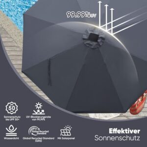 - Der Sonnenschirm ist aus recycelbarem Material gefertigt und trägt das Global Recycled Standard (𝐆𝐑𝐒) Zertifikat. Dies bedeutet, dass unser Bezug aus rückverfolgbaren recycelten Fasern hergestellt ist und strengen Umwelt- und sozialen Standards entspricht. Mit dem Kauf unseres Sonnenschirms schützen Sie nicht nur vor der Sonne, sondern tragen auch zur nachhaltigen Entwicklung und der Kreislaufwirtschaft bei.