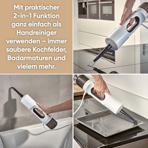 - 2-IN-1-FUNKTION - Nicht nur als Boden-, sondern auch als Handdampfreiniger einsatzfähig, sorgt das Gerät für saubere Kochfelder, Badarmaturen und vieles mehr im Haushalt