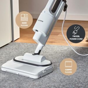 - KOMFORTABLE BEDIENUNG – Dank 7 m Kabel hat der elektrische Bodenwischer eine große Reichweite und sein 180 Grad Schwenksystem ermöglicht eine komfortable Bedienung
