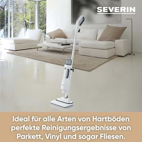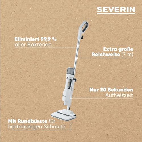 - DIE KRAFT VON DAMPF FÜR HYGIENISCH SAUBERE BÖDEN - Der SEVERIN Dampfreiniger entfernt bis zu 99,9 Prozent der Bakterien und entfernt selbst hartnäckigen Schmitz von allen Böden und Teppichen; Inlusive sind zudem 2 x zusätzliche Wischaufsätze