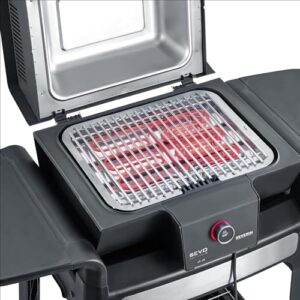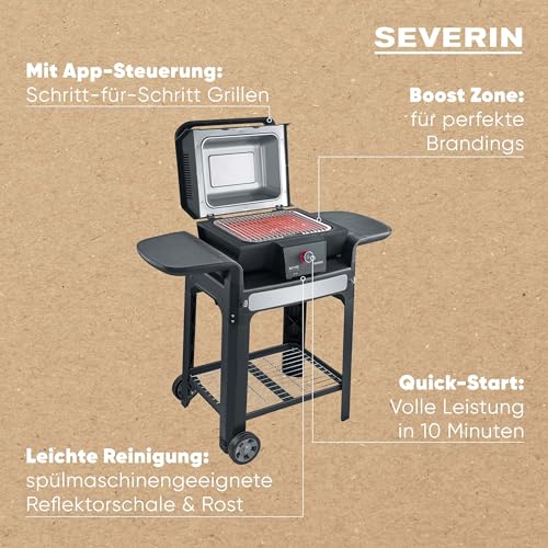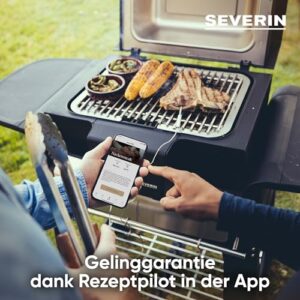 - 8139 ➝ Details – SEVERIN Elektrogrill mit Grillwagen GTS 8139 mit integriertem Kernthermometer (Edelstahl-schwarz), smart steuerbar via App, 3.000 W Leistung, stufenlose Temperaturregelung, für drinnen und draußen, leichte Reinigung, mit extra langem Kabel (2m), 2,5 kg Grillrost / 29,7 kg Nettogewicht / Grillfläche: 41,5 x 31,5 cm