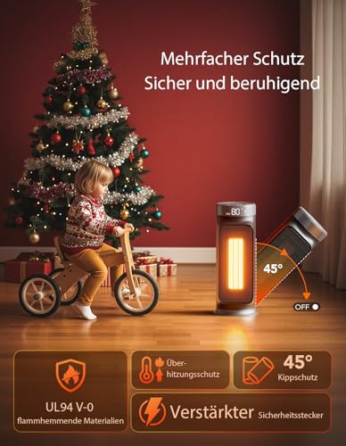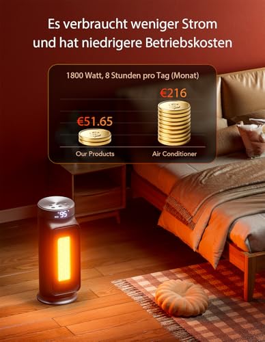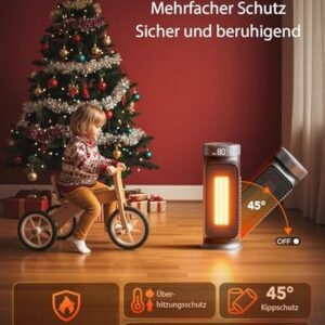 - ⚡ Höchste Sicherheit & Energieeffizienz -- Vollständig ausgestattet mit Überhitzungsschutz, automatischer Abschaltung bei Kippen und CE-Zertifizierung. Spart Energie durch zielgerichtete Beheizung und thermostatgesteuerte Leistungsregulierung.