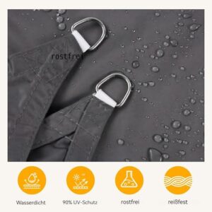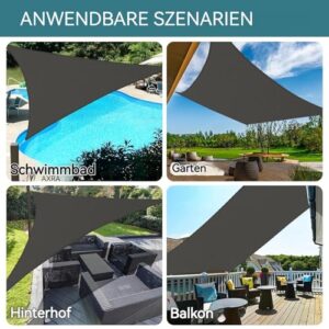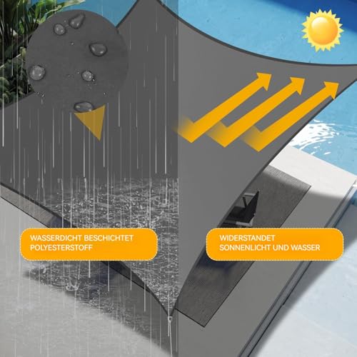 - Wasserfeste Beschichtung: Keine Sorge bei plötzlichen Regengüssen. Dieser segel sonnenschutz verfügt über eine PU-Beschichtung, die das Eindringen von Regenwasser effektiv verhindert. So können Sie auch bei leichtem Regen unbeschwerte Stunden im Freien mit Familie und Freunden genießen.