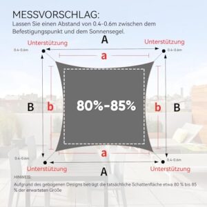 - Vielseitig einsetzbar: Ideal für Terrasse, Rasen, Garten, Pool, Deck, Hinterhof, Park, Carport, Pergola, Auffahrt und viele weitere Außenbereiche. Eine flexible und praktische Lösung für effektiven Sonnenschutz.