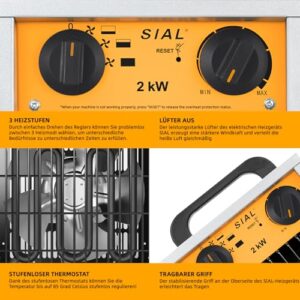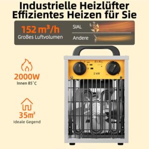 - EFFIZIENTE HEIZUNG: SIAL-Elektroheizkörper sind mit Hochleistungs-Aluminiummotoren und -lüftern ausgestattet, die die Wärmeableitung beschleunigen und die Komponenten gleichmäßig erwärmen