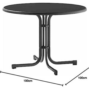 Sieger 236/G Boulevard-Klapptisch mit mecalit-Pro-Platte Ø 100 cm, Stahlrohrgestell eisengrau, Schieferdekor anthrazit