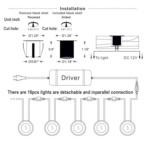 - 【Entfernbar Hülse】Die externen 16 LED bodeneinbaustrahler aussen sind abnehmbar und können parallel installiert werden. Wenn ein oder zwei Leuchten ausfallen, können die restlichen LED Einbaustrahler noch normal weiterarbeiten. (Wenn Sie den Einbaustrahler dimmen möchten, können Sie in unserem Shop einen Dimmer kaufen - Suche Asin: B0DFPPWC21.)