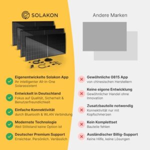 - 𝗘𝗻𝗲𝗿𝗴𝗶𝗲 𝗶𝗺𝗺𝗲𝗿 𝗶𝗺 𝗕𝗹𝗶𝗰𝗸 - Mit der Solakon-App überwachen Sie Ihre Balkonkraftwerk Daten per WLAN-Funktion in Echtzeit. Sie sind direkt informiert über tägliche & jährliche Solarerträge & CO₂-Einsparungen! Dank einfacher Einrichtung und intuitiver Bedienung direkt startklar! Höchste Server-Standards durch deutsche Eigenentwicklung!