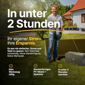 - 𝗞𝗶𝗻𝗱𝗲𝗿𝗹𝗲𝗶𝗰𝗵𝘁𝗲 𝗜𝗻𝘀𝘁𝗮𝗹𝗹𝗮𝘁𝗶𝗼𝗻 - Das Balkonkraftwerk kann ohne Elektriker oder Fachmann in ca. 1-2h aufgebaut werden.
