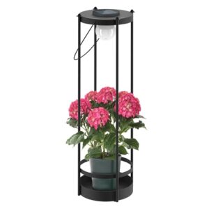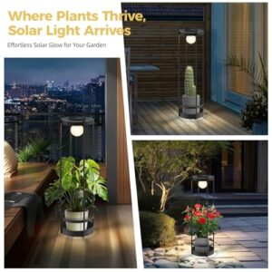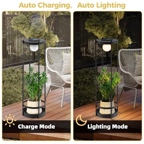 - 【Doppelzweck Design】Elegante schwarze schmiedeeiserne Solar-Stehlampe mit integriertem Pflanzgefäßständer und integriertem Griff; zeigen Sie Sukkulenten, Efeu oder dekorative Akzente auf der Oberseite, während Sie Ihre Terrasse oder Ihren Garten beleuchten. Einfach überall zu bewegen für sofortigen Stil