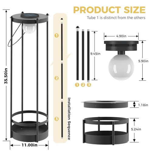 - 【Kabellose & einfache Einrichtung】 Stellen Sie die 35,5 Zoll hohe Stehlampe einfach in die Sonne, lassen Sie sie aufladen und genießen Sie sofortige Beleuchtung und Gartendekoration. Drahtloses Design mit Tragegriff für einfaches Aufstellen und Bewegen – perfekt für Hof, Garten, Veranda