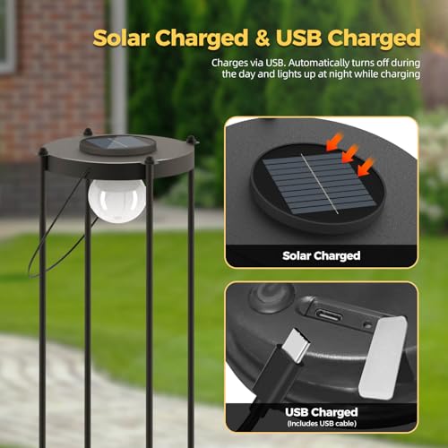 - 【Auto On/Off & Dual Charging】 Das hocheffiziente Solarpanel lädt sich in 6-8 Stunden Sonnenlicht für 8-12 Stunden Beleuchtung vollständig auf. USB-Aufladung an bewölkten Tagen verfügbar