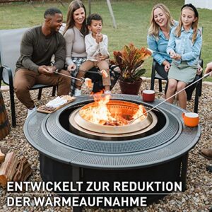 - INTELLIGENTES DESIGN: Die mit Luftlöchern versehene Tischplatte reduziert die Wärmeaufnahme und lässt kühle Luft frei um die Feuerstelle strömen. Durch die begrenzte Wärmeübertragung des Gerüsts dient der Surround ideal als Ablagefläche bei der nächsten Grillparty.
