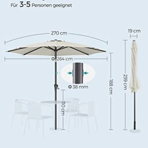 - [Für verschiedene Szenarien geeignet] Der 270 cm Sonnenschirm spendet 3-5 Personen ausreichend Schatten im Garten, auf der Terrasse, auf dem Balkon oder am Pool