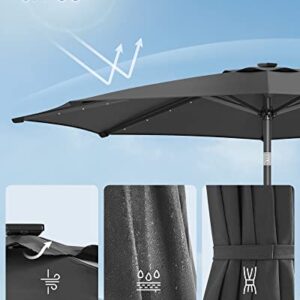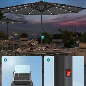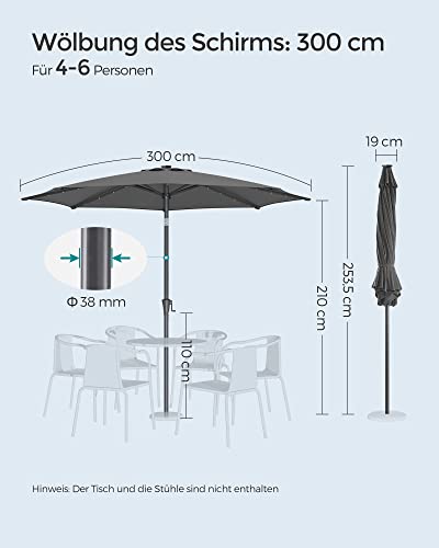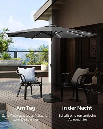 - [Viel Spaß im Freien – auch bei Nacht] Der Schirm hat 32 LED-Lämpchen, die tagsüber durch das Solarpanel mit Strom versorgt werden und nachts eine romantische Atmosphäre im Freien schaffen. Auf den Schalter am Schirmmast drücken und Lichter einschalten!