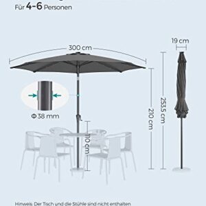 - [Leicht zu öffnen und zu schließen] Drehen Sie einfach an der Kurbel, um den 300 cm Terrassenschirm zu öffnen und zu schließen. Einfach und schnell!