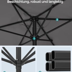 - [Robust und langlebig] Die 6 Rippen und der Mast des Gartenschirms bestehen aus hochwertigem Stahl, um eine robuste Konstruktion zu gewährleisten. Zudem sind sie pulverbeschichtet, was für eine lange Gebrauchsdauer sorgt