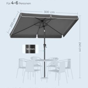- [Optimaler Sonnenschutz] Kann um 30° in 2 entgegengesetzte Richtungen geneigt werden, um Schatten jederzeit auf die richtige Stelle zu werfen; Größe 300 x 200 cm, rechteckig, ideal für den Balkon; herunterhängender Stoff am Rand, um mehr Schatten zu werfen