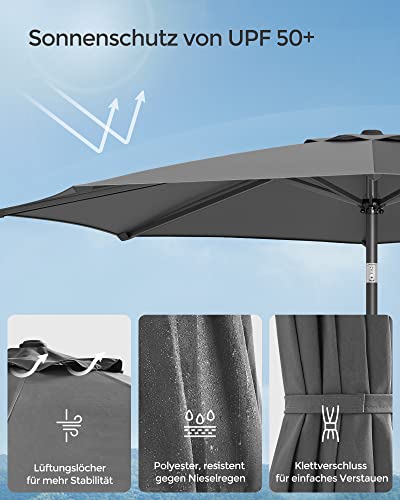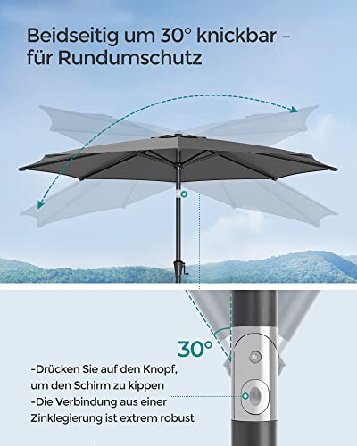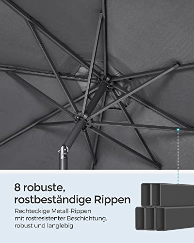 - [Stabile und langlebige Rippen] Die Rippen des Gartenschirms bestehen aus hochwertigem, pulverbeschichtetem Stahl, sind robust, stabil, rostbeständig und gewährleisten eine lange Gebrauchsdauer