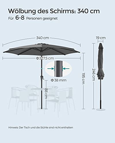 - [Für verschiedene Szenarien geeignet] Der 340 cm Sonnenschirm spendet 6-8 Personen ausreichend Schatten im Garten, auf der Terrasse, auf dem Balkon oder am Pool