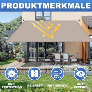 - 【Hochwertiges Material】: Das wasserdichte Sonnensegel aus 180 gsm High Density Polyester (PES) mit PU Beschichtung.Stark genäht, wasserdicht und frei von Schimmel, Pilzen und Flecken. PES-Stoff, reißfest, langlebig, sehr stabil, kann zu jeder Jahreszeit eingesetzt werden.