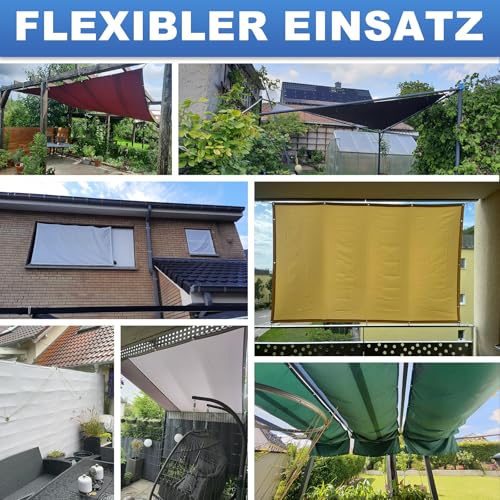 - 【Einfach zu installieren】: Das robuste Sonnensegel lässt sich einfach und schnell montieren. Die alle 50 cm oben und unten eingenähten Rostfreie Stähle-Ösen sorgen für maximale Stabilität. (mit vier 1,5 m langen Seilen).